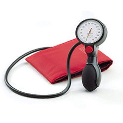 Manual blood pressure cuff with a convenient two-in-one tubing system and a matching storage bag.